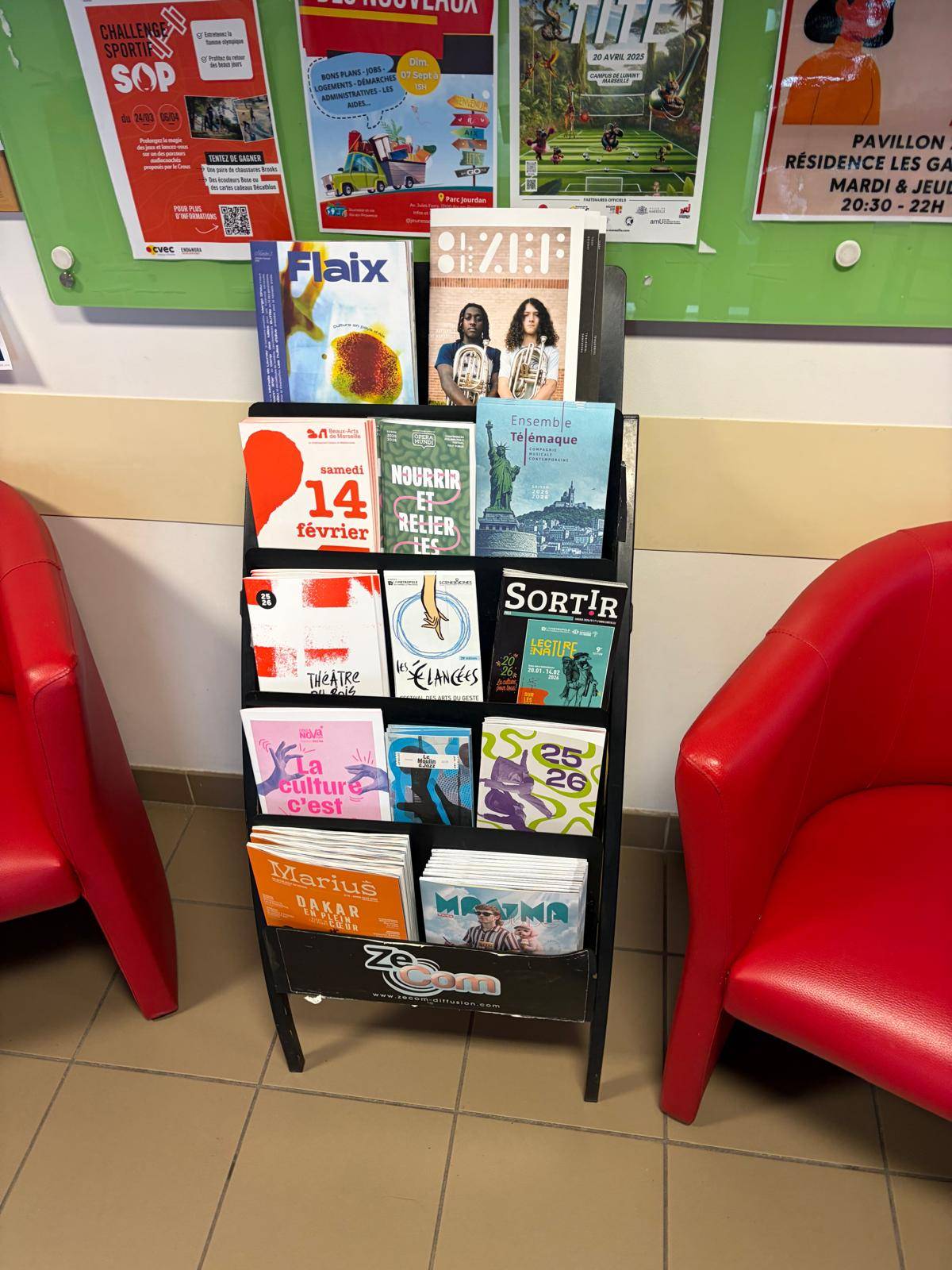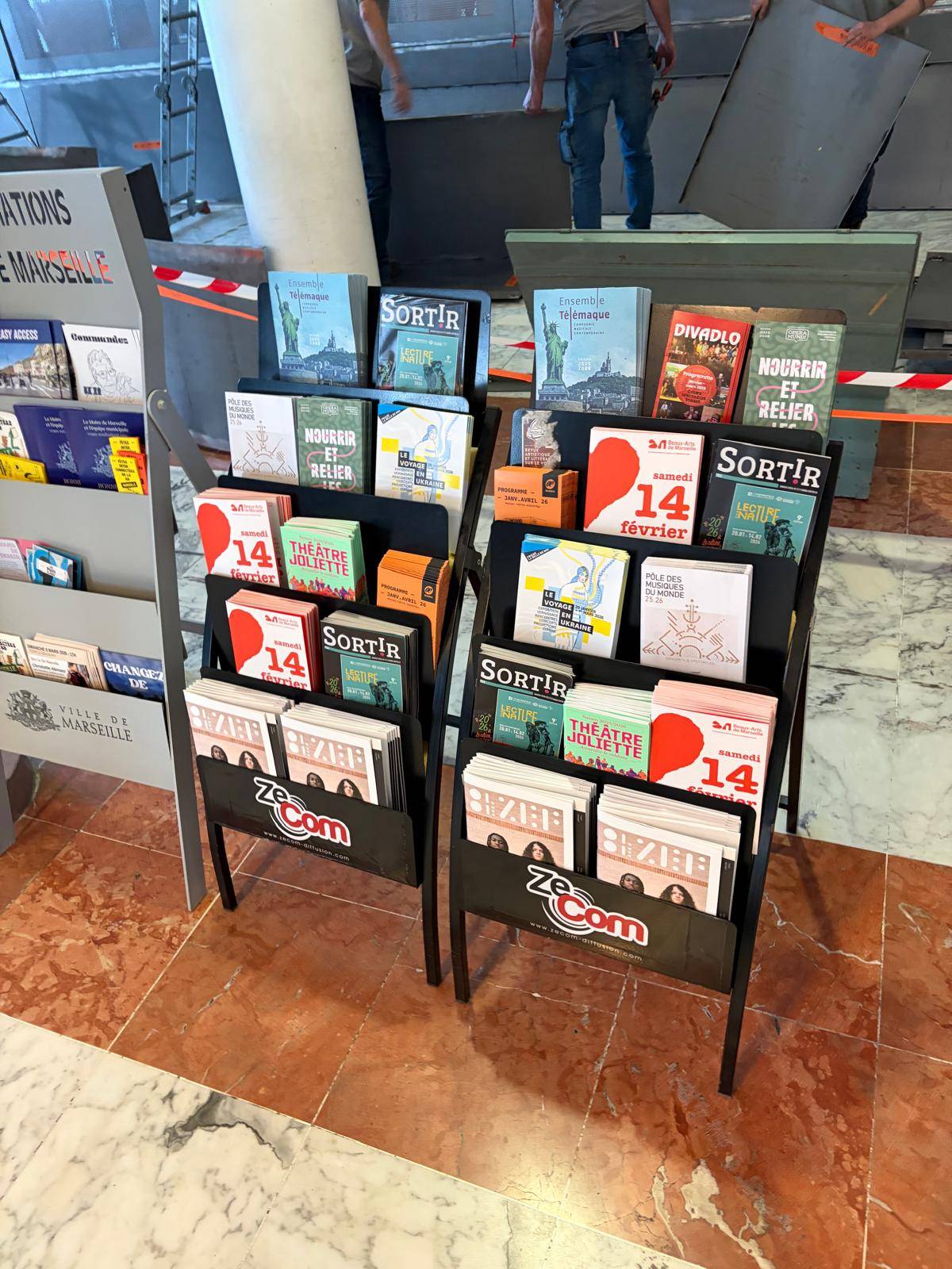 C’est là qu’intervient ZeCom, société spécialisée dans la communication culturelle, la publicité urbaine et la diffusion de supports imprimés. Pour le ZEF, ZeCom a assuré la distribution de 10 000 exemplaires grâce à un réseau de présentoirs dédiés, installés dans de nombreux lieux stratégiques de Marseille et de ses environs. Ces points de diffusion, intégrés à des espaces valorisés, optimisent la présence des événements et renforcent leur crédibilité.