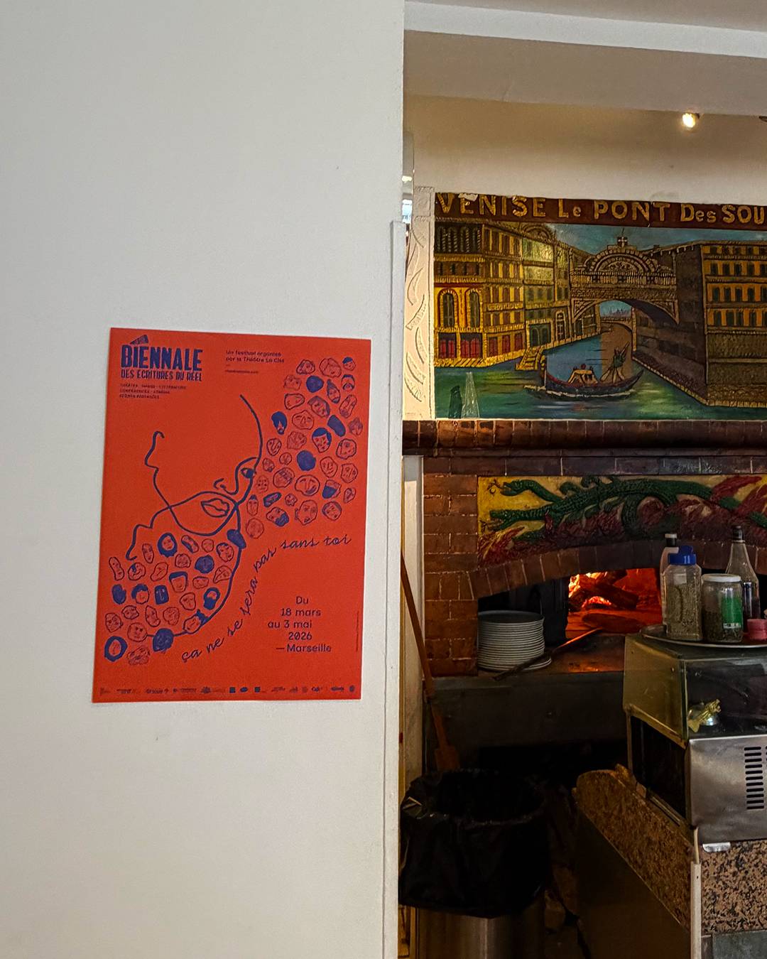 L'affichage au scotch vient élargir ce socle. Avec 150 affiches réparties du centre-ville jusqu'aux 15e et 16e arrondissements, il s'infiltre dans les vitrines et les murs de passage, au plus près des flux piétons et du quotidien des habitants. Plus agile, il rejoint des zones où les supports traditionnels sont peu présents. Deux formats complémentaires pour une seule ambition : que la Biennale trouve son public là où il vit.