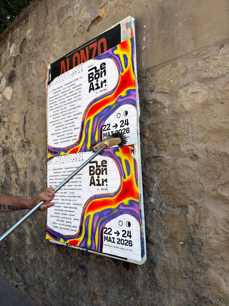 Avant même que la musique ne résonne, quelque chose se passe à Marseille. Des affiches surgissent, se répètent, se répondent d’un mur à l’autre. Cette année, 2000 affiches en affichage libre annoncent l’arrivée du Bon Air et installent peu à peu le festival dans l’horizon de la ville.