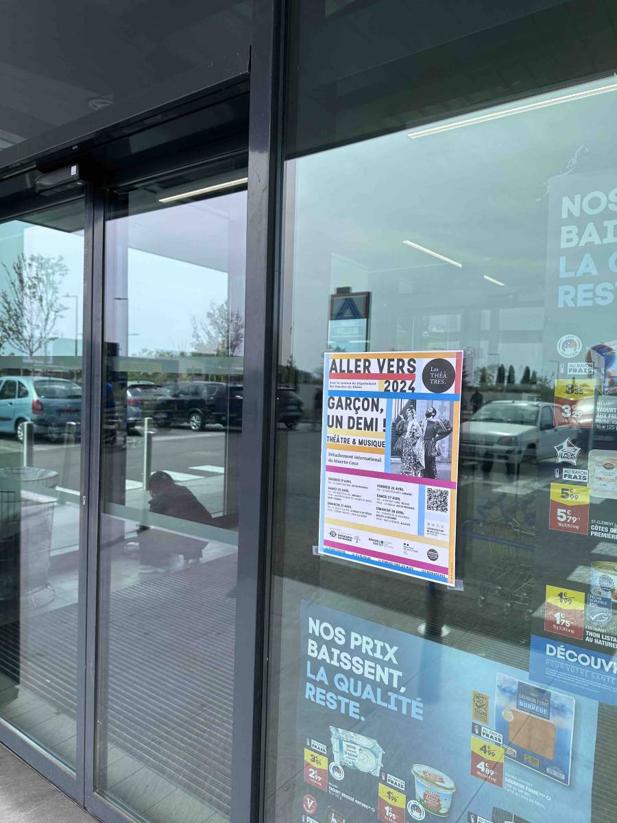 Et pour le mettre en avant les Théâtres ont demandé à ZeCom de faire une campagne d'affichage au scotch chez les commerçants des villes recevant le spectacle.